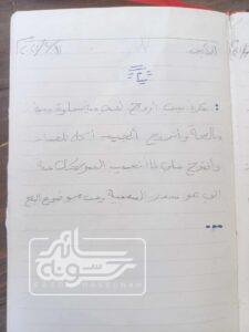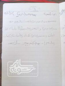 بعد المكالمة الهاتفية بعدة دقائق فقط، تلقى خبر استشهاد طفله مهدي وزوجته. يتابع: “كان مهدي يكتب مذكراته منذ وقت، وحكى عن ذكرياته في عيد ميلاده الأخير في الرابع من آذار/ مارس 2024م، كان يكتب المأساة بصوت الطفولة، “كي لا ينسى ما مر به يومًا وقت الرخاء ربما”.