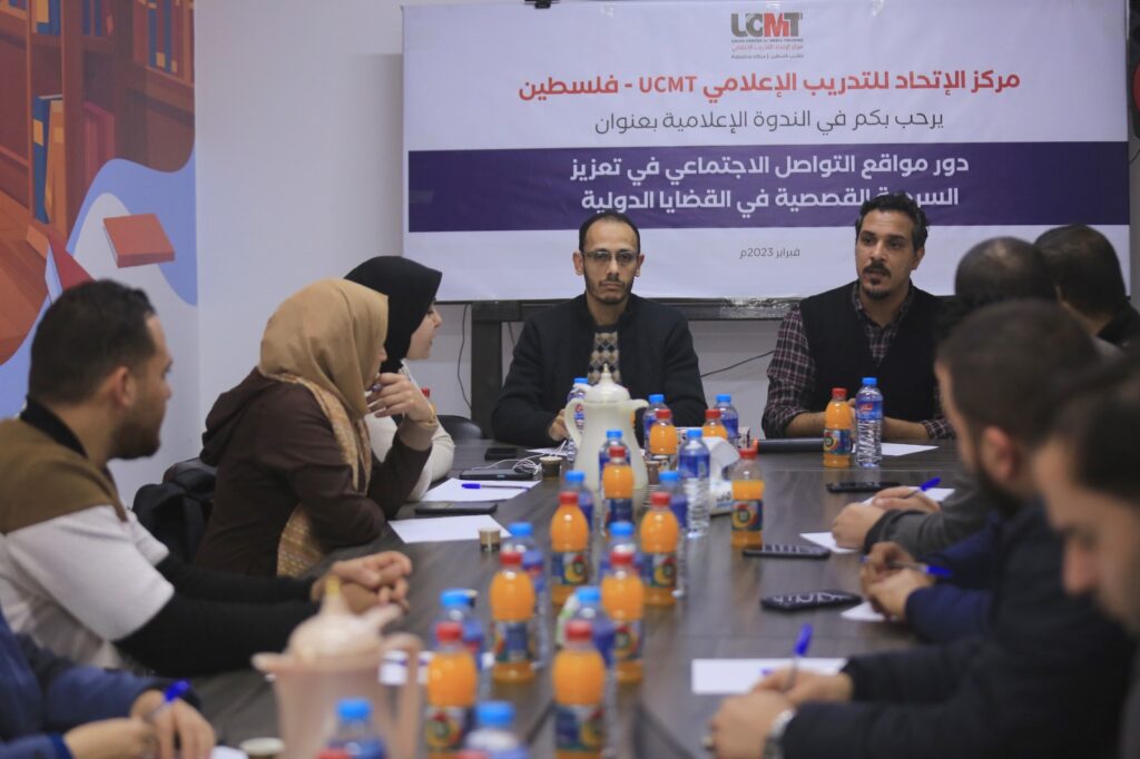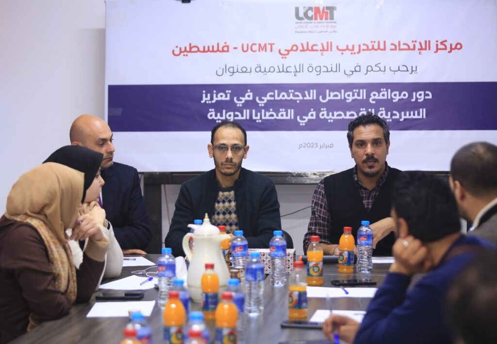 نظّم مركز الاتحاد للتدريب الإعلامي UCMT – فلسطين، اليوم الأحد 26 فبراير 2023، ندوة إعلامية بعنوان: “دور مواقع التواصل الاجتماعي في تعزيز السردية الرقمية في القضايا الدولية، شارك فيها عدد من المختصين في الإعلام الرقمي وأكاديميين في مجال الإعلام، بحضور ثلة من الصحفيين، وإدارة المختص في الإعلام الاجتماعي سائد حسونة.